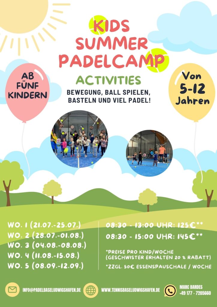 In den oben genannten Wochen findet auf unserer Anlage das KIDS Summer Padelcamp statt – eine tolle Gelegenheit für unsere jungen Spielerinnen und Spieler, den Sommer aktiv, sportlich und mit ganz viel Spaß zu verbringen!