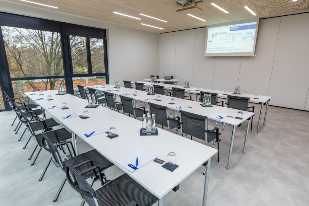 Der Raum New York bietet die Naturatmosphäre des Clubs in vollen Zügen. New York ist auf der Vorderseite des Clubhauses und schwebt frei über den Eingangsbereich des Clubhauses. Mit seiner großzügigen Verglasung bietet der Raum einen freien Blick in die grüne Vielfalt der parkähnlichen Anlage des BASF Tennisclub