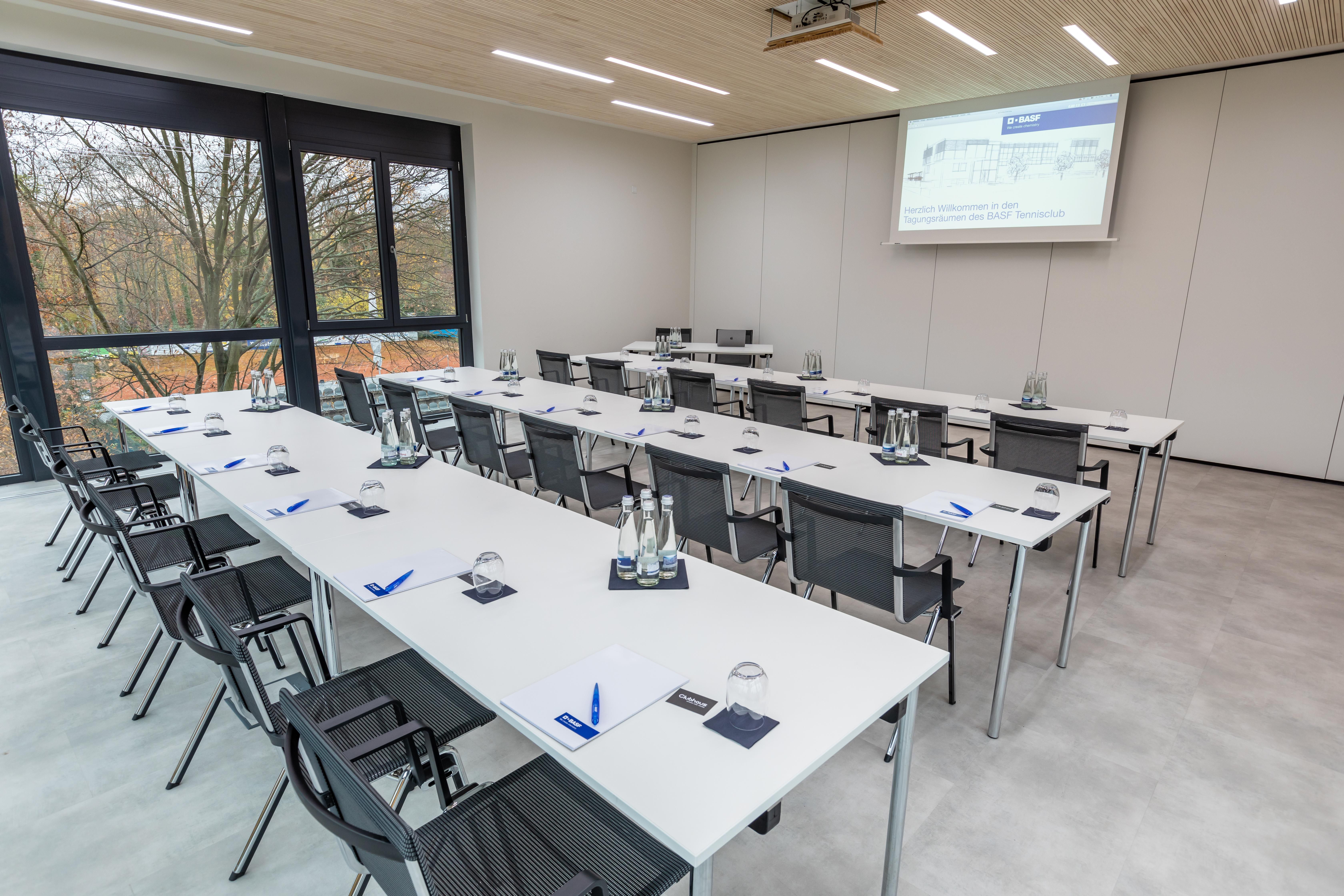 Unser großer Seminarraum mit 60 m², Blick über den Center Court, Platz für bis zu 40 Personen und modernster Konferenztechnik inkl. Großformat-Projektion und Soundsystem.